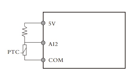 Ai2可接受電機溫度傳感器輸入,當電機溫度超過保護值時,變頻器輸出故障并停機。
